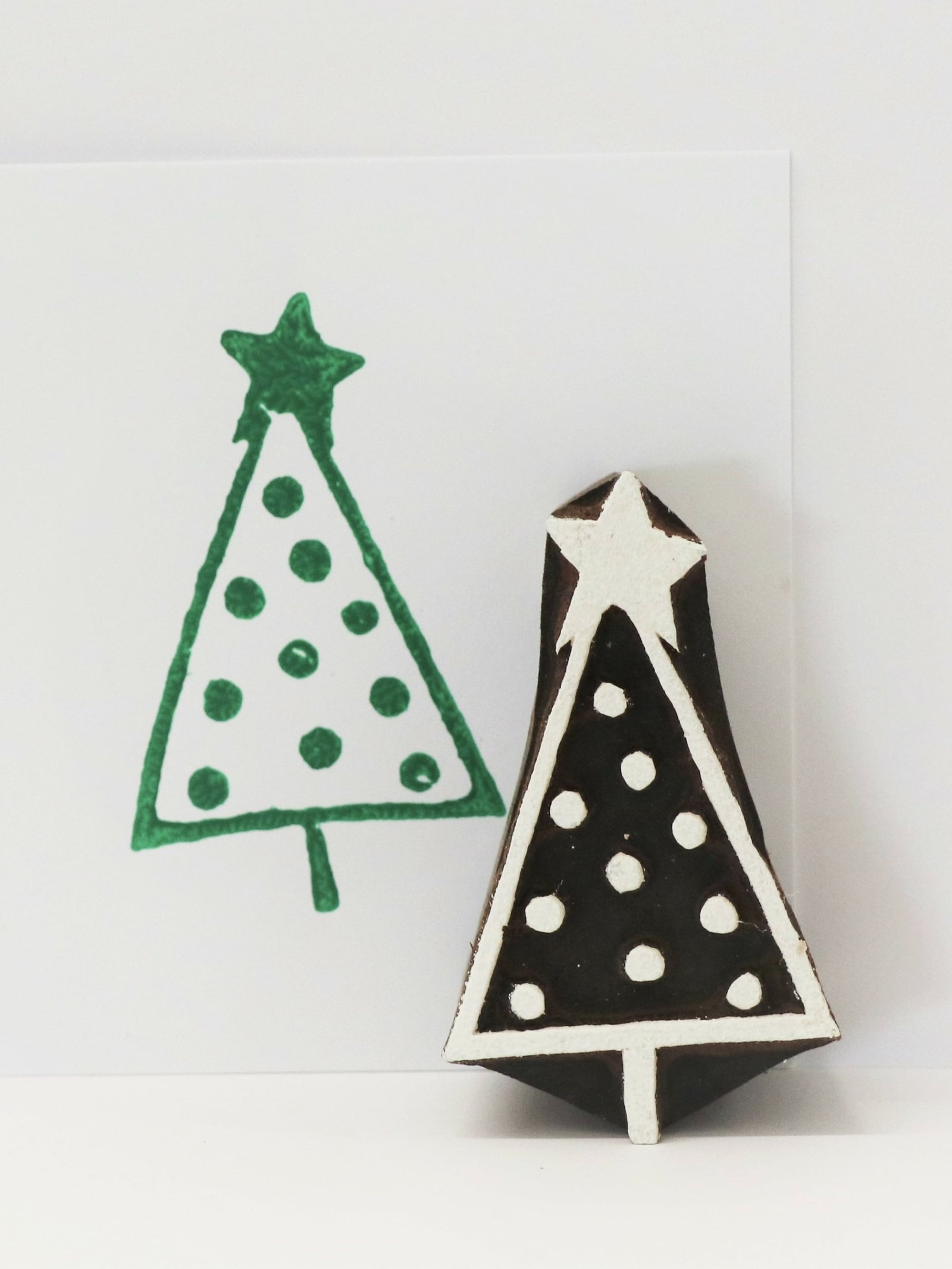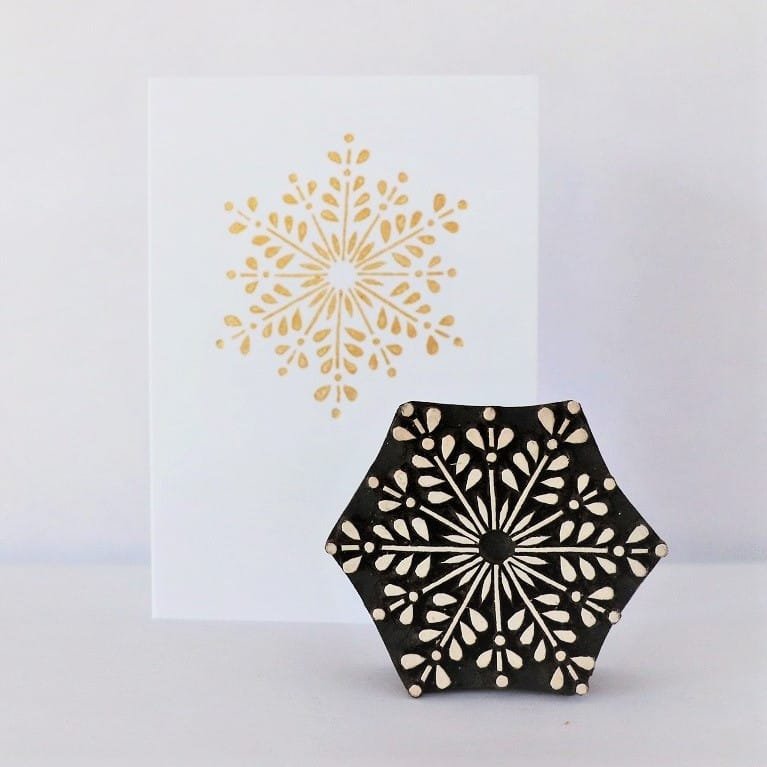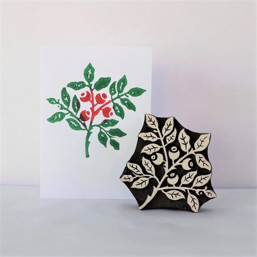 Detailed Christmas Bauble, hand carved Indian wood printing block; textile stamp; pottery stamp.