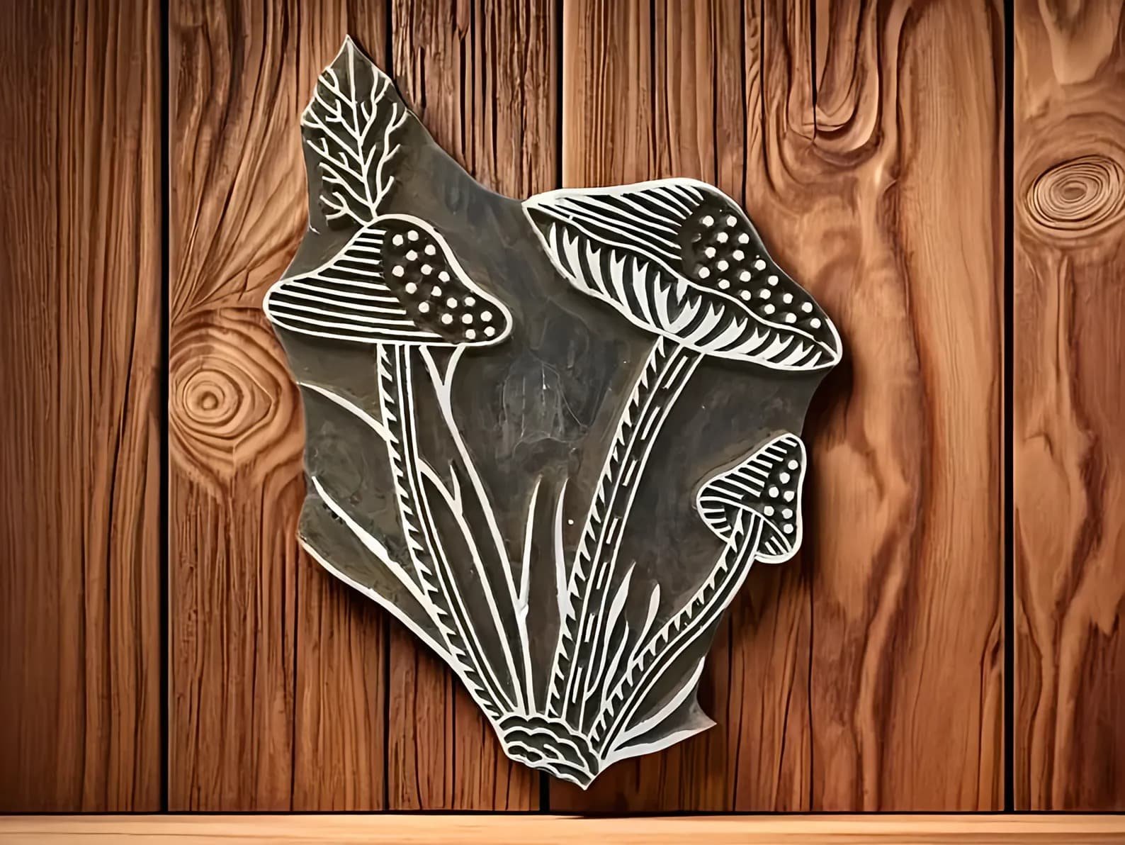 Cluster of Mushroom, hand carved Indian wood printing block